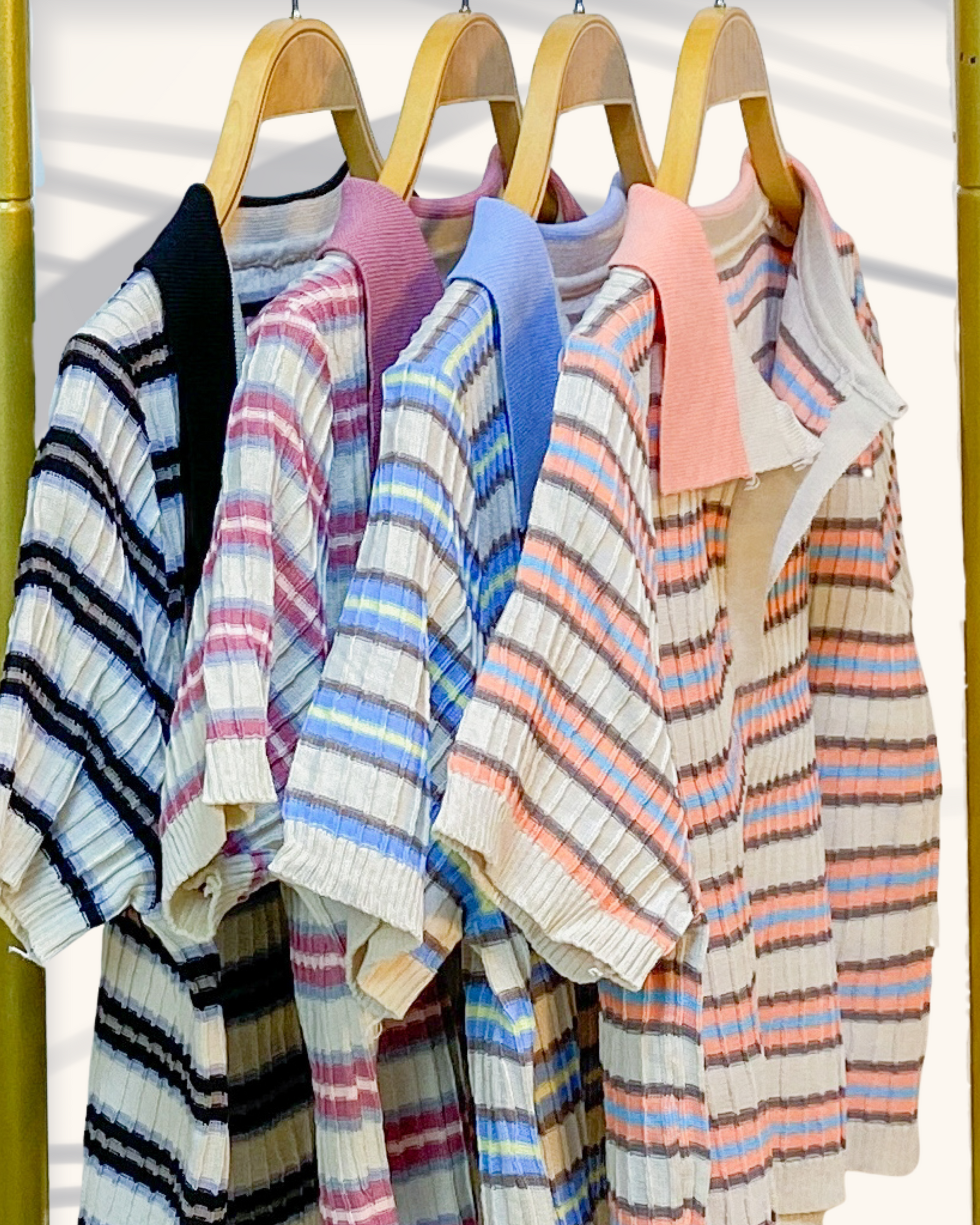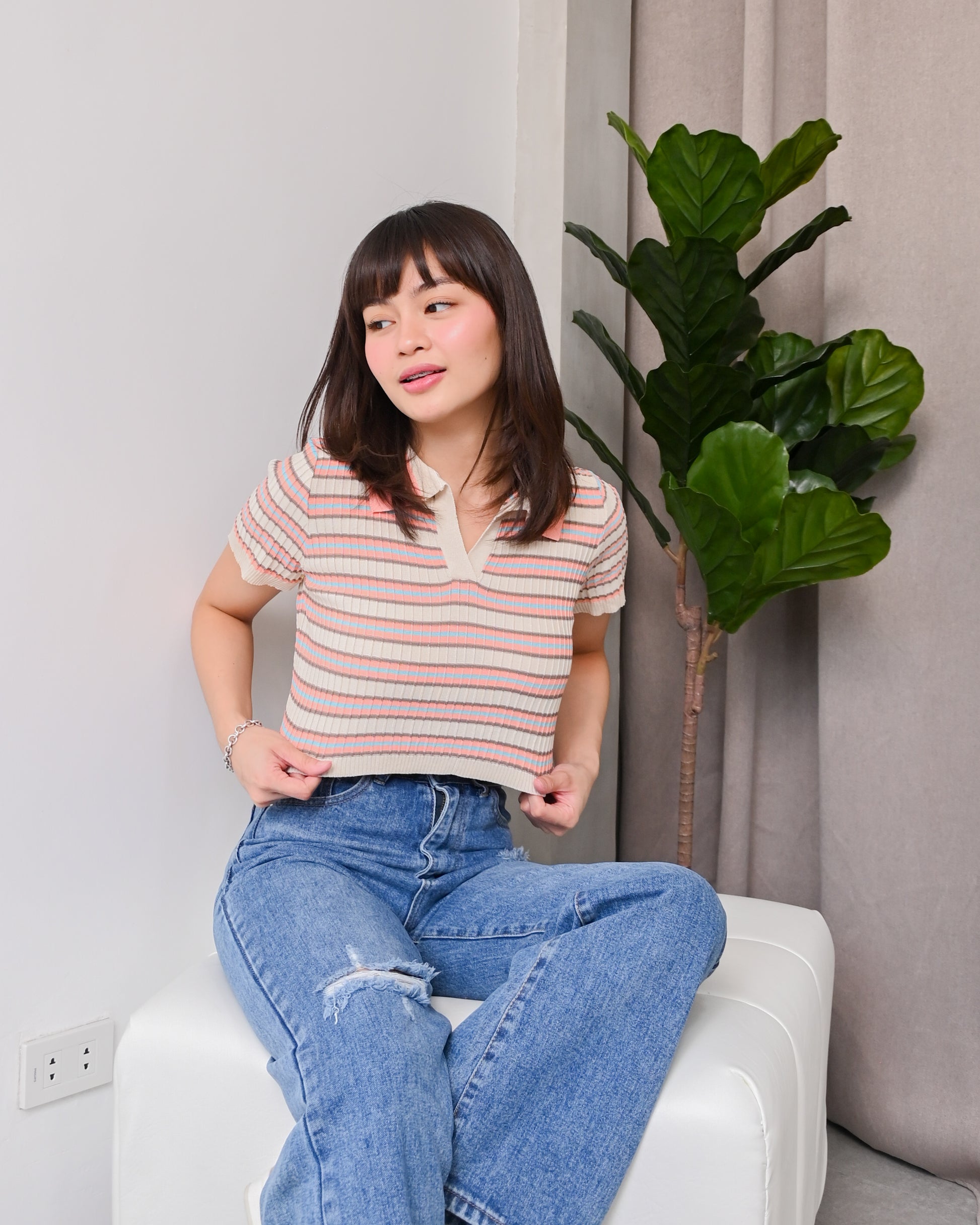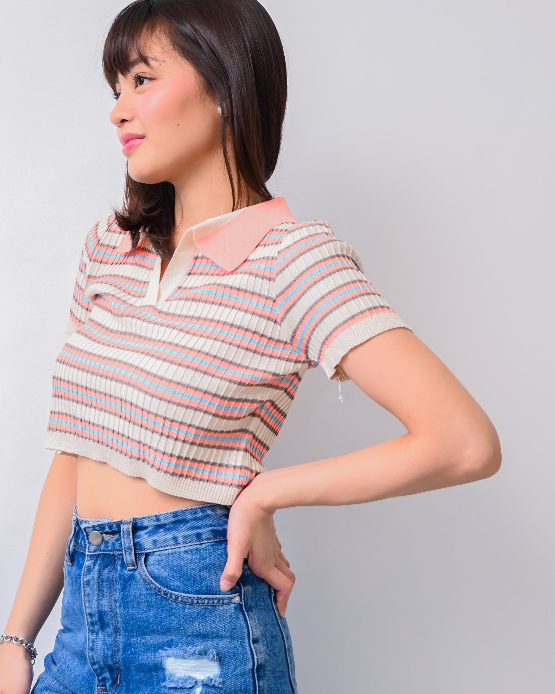 Natalie Knit Striped Collared Crop Top